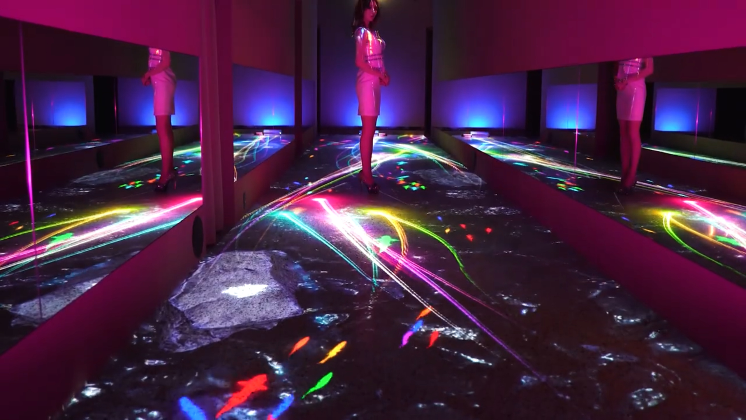仙台の「CLUB CAZICA」にて、エントランスから廊下にかけて、広瀬川をモチーフにしたインタラクティブ演出を実装。