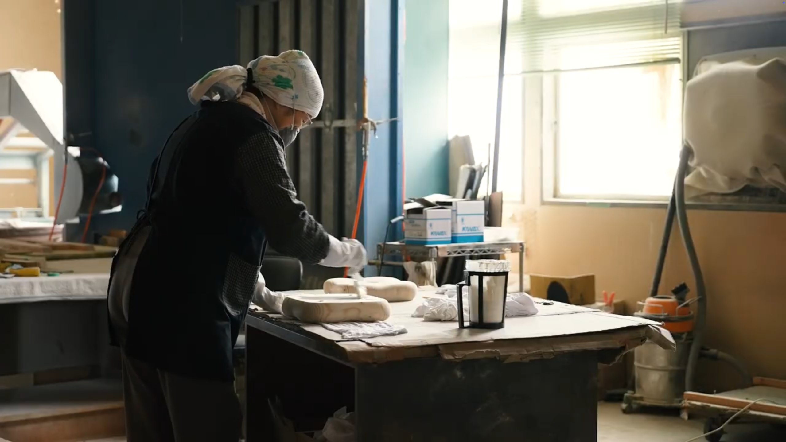 木材用3D加工機による曲面の削り出しなど、ものづくりの工程に加え作り手の思いを伝えるインタビューも収めました。